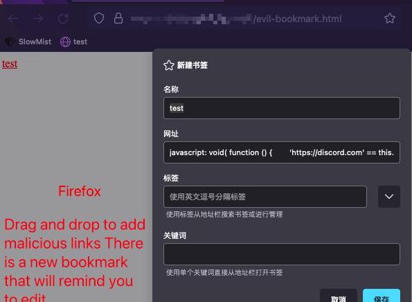由此可见在书签添加这方面火狐浏览器的处理安全性更高。场景演示