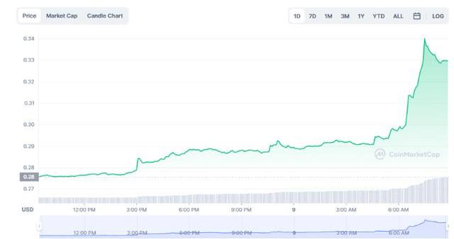 卡尔达诺(ADA)在过去24小时内上涨了近20.11%。