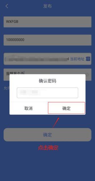 4、输入密码,点击确定,代币成功发出。(你可以在WisdomChain节点网络中查询,代币是否发布成功。