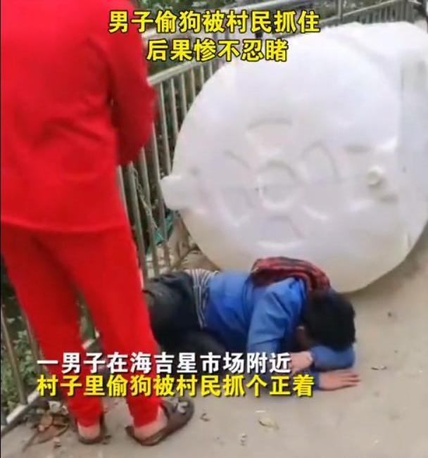 这件事发生在海吉星市场附近的一个村子里,当时涉事男子在村里偷狗时,恰好被村民给抓了个正着。