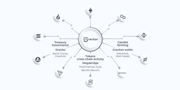 有了Graviton后,社区可以在生态系统中快速转移代币,而Graviton Catalyst则计划奖励具备流动性的包裹代币,允许各种代币化区块链项目扩展到非原生网络。